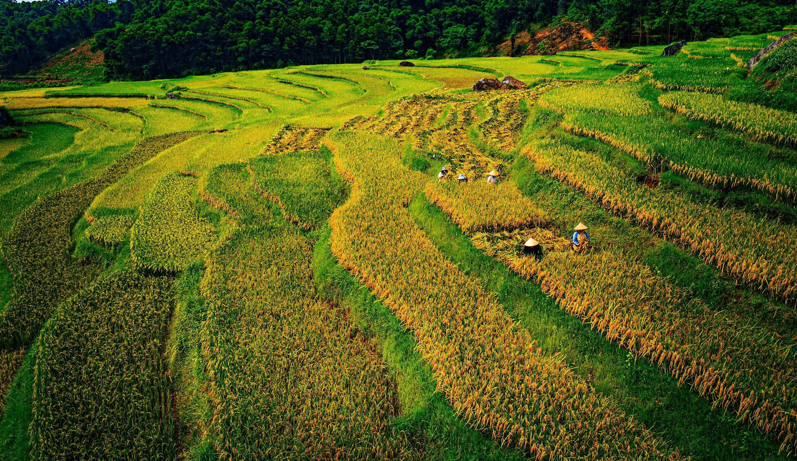 Located in the western reaches of Thanh Hoa province, Pù Luông Nature Reserve covers more than 17,000 hectares across the Ba Thuoc and Quan Hoa districts, encircling Vietnam’s beautiful forests as well as Laos’s. The moderate mountain environment of the area blesses us; every year, as the rice ripens, its tiered fields open in golden glory, calling forth the ageless beauty of a lacquer masterpiece. Both experienced photographers and adventurous visitors wanting to see what residents affectionately refer to as “the golden season” find here a fleeting spectacle.